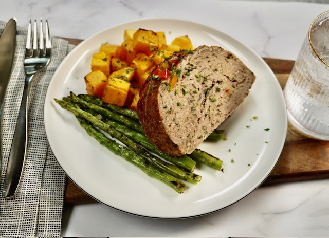 Organic Free-range Ground Turkey served with Spaghetti squash and seasonal vegetables.